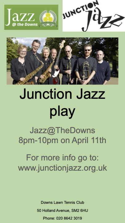 Great venue in Sutton – the entrance is free. Music starts at 8.00 pm and the Tennis Club bar is open from 6.00 pm with an excellent range of beers, wines, spirits and soft drinks.